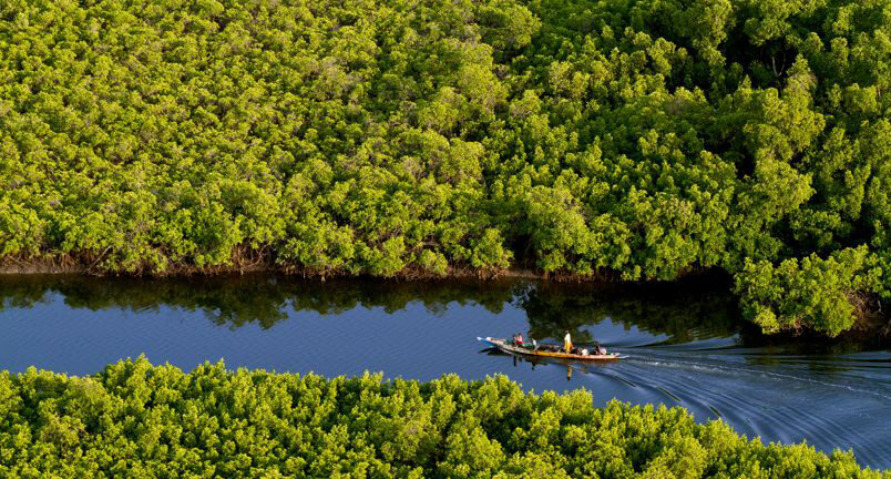 Une balade en pirogue à travers les bolongs et les mangroves.